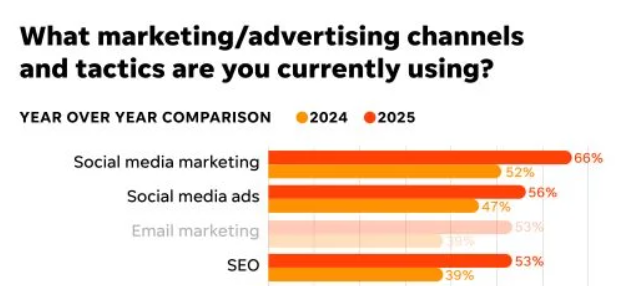 Según el último informe de WordStream sobre tendencias digitales en pymes, el 64% de los pequeños negocios identifica a las redes sociales como su fuente principal de tráfico, mientras que el SEO aparece en segundo lugar, con un 52 %.